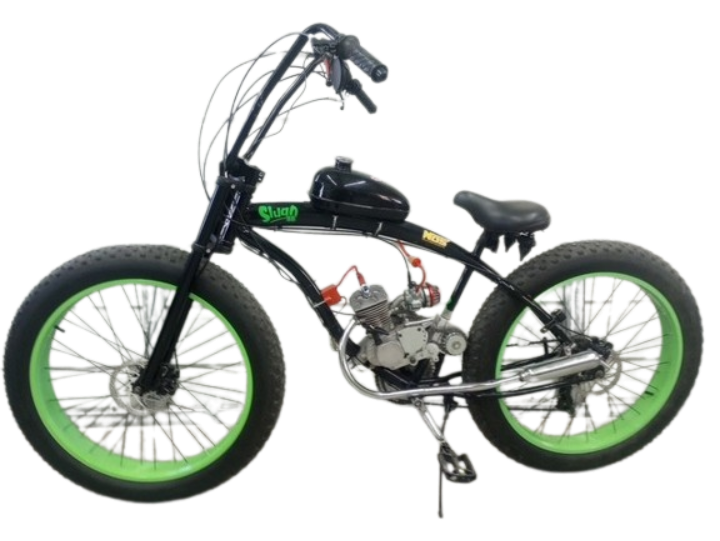 FOR SALE; Multi Speed Motorized 4" Fat Tire 26" Micargi Slugo SS 7 Speed bike, Steel frame