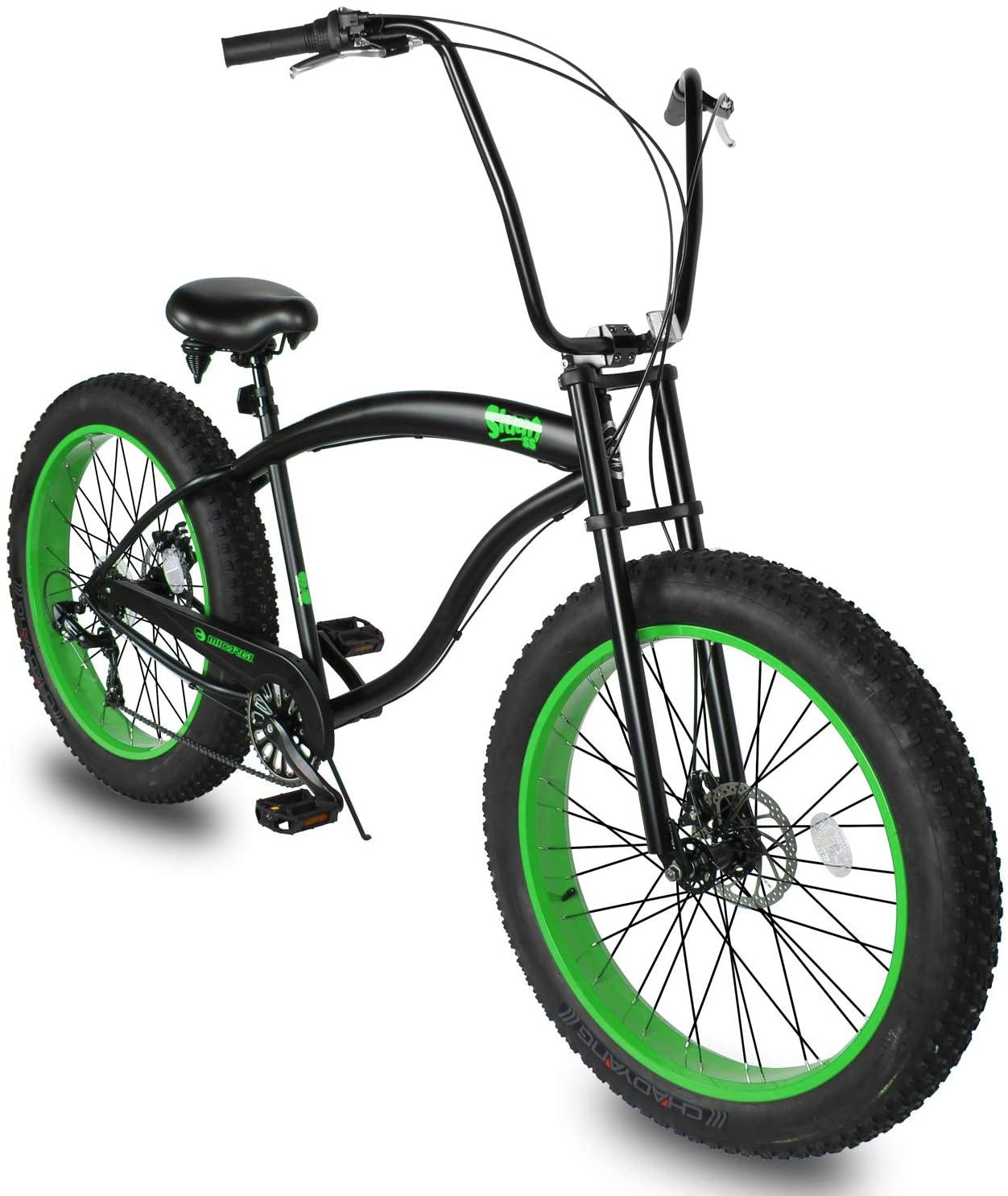#1,. Micargi Slugo SS is a 7 speed Shimano derailer bike with 26” x 4” fat tires. $600.00
